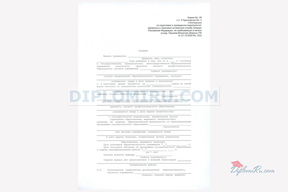Справка в военкомат |